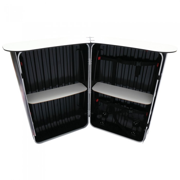 The Genie Counter Case fits RPLs, EZ Tubes and Retractables. Add custom PVC or Laminate graphics to transform the Genie Counter Case into a portable counter at your next trade show or event! Inside shelving and countertop make for convenient space.